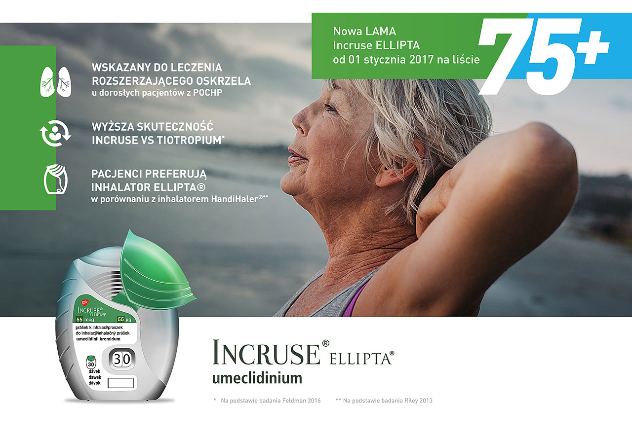 Ulotka nowego leku wziewnego na duszność. Dzięki urządzeniu pacjent otrzymuje odpowiednią dawkę i wie że przyjmuje ją regularnie.